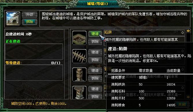 另外,还可以通过升级城墙,城墙上便可以建设更多的城防,有了更多的城防空间,就可以用来建造各种城防工事,从而更好的增强城防实力。