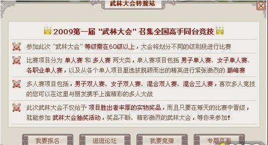 预知更多武林奥运会的详情,请及时关注九维官方赛事,网页游戏顶级竞技平台因你而精彩!