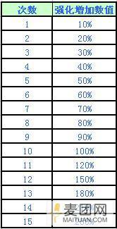 下面的表格能清晰的看到每一次装备强化等级的增长带来的强化数值的增加。