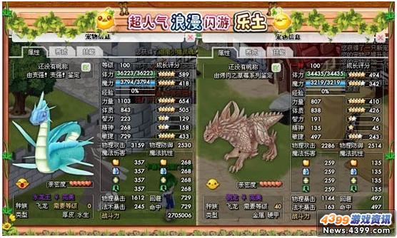 通过对比大家不难看出,有些转生后的宠物实力绝对可以媲美甚至超越那些神兽!而且未转生的玩家也可以佩戴转生后的宠物哦。有了这些超强宠物,相信你的4399乐土浪漫之行将会一路风雨无阻,快乐无边!