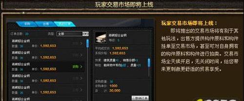 即将推出的交易市场将有别于其他玩法,出售方提供构件原料和构件挂单至交易市场,甚至可对自身拥有的构件原料和构件进行拍卖。交易市场全天候开启,无关闭时间,给您带来更刺激更舒适的贸易享受。