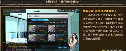 谁说地皮永久属于某个地产商?只要有实力,就来一同竞争吧!每周根据系统给予的地皮抢购的任务提示使用商业手段进行竞争,每周根据地皮竞争的排行榜进行单个服务器的排行,排行前十位的均可获得系统奖励的稀有风云道具。