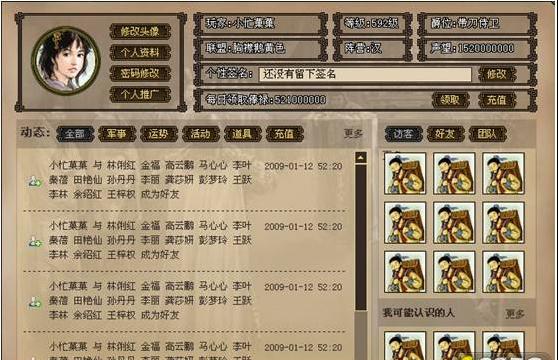 | 互动交友功能 | 在游戏中,每一个玩家角色都拥有自己的“个人中心”,其他玩家也可以很方便的访问到更多玩家的“个人中心”并查看该玩家的相关信息,进行玩家之间的互动。 | 开心网交友 |