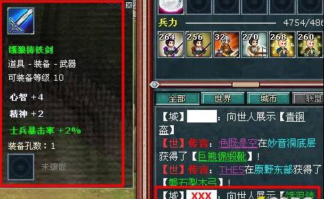 只要在此场景中的玩家都可以看到该系统信息,点击所展示的装备名称,装备详细属性就会在左侧列出,一目了然。