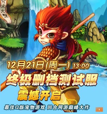 4399《西游传》将于2009年12月21日下午13:00开启终极删档测试服,终极删档测试时间为21日-26日,预计27日正式开服!我们盛情邀请各位玩的再次光临,体验最新版本的全新魅力!