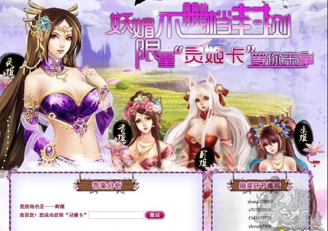 当你点开“灵姬卡”领取页面妖媚不删档封测,限量“灵姬卡”等你来拿时,玩家将进入趣味测试环节。在测试问题中,选择你认为正确的答案,点击提交按钮,答案和“灵姬卡”激活码将呈现在你面前。