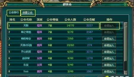 点击查看当前公会信息,选取本国的帮会名称点击申请加入。由会长受理申请后成为公会成员,玩家可同时申请多个公会。