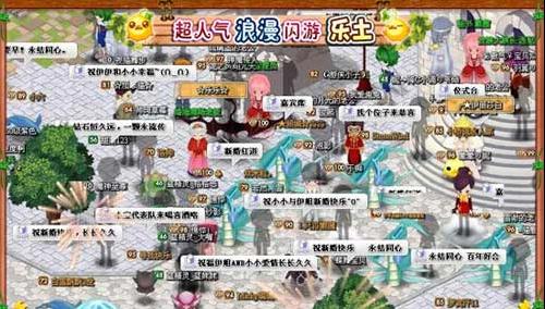 现在已经全面杜绝网婚了么?不可能!只要游戏中有爱,那么就无法阻挡两个相爱的人在一起 !可能与游戏可爱唯美的童话风格也密不可分吧,《乐土》中每天都会有这样大型的婚宴,新人们喜欢在喧闹的小镇中叫上自己的亲朋好友,让大家一同见证他们的爱情,那时绚烂的烟花在卡鲁格纳城上空绽放,带着大家美好的祝福,为《乐土》笼罩上一片温馨与浪漫。