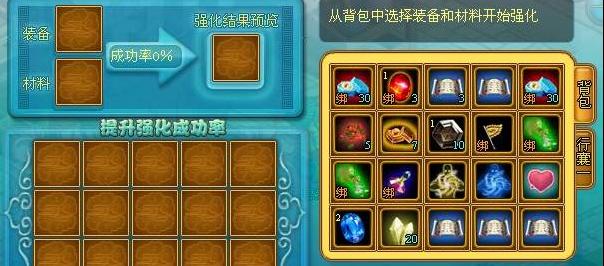 然后系统会弹出装备强化对话框。选择您要强化的装备,放入强化宝石,然后点击“强化”即可完成操作。