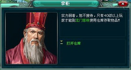 4399《盘龙神墓记》仓库使用唯一的条件是玩家等级达到40级。这个条件可以归入另条件使用仓库之列,新玩家注册进入4399《盘龙神墓记》之后三个小时就可以升级至40。大型仓库设在和平之国“永恒大陆”,玩家可以从自己的主城传送至永恒大陆的罪恶之城,仓库就设在龙门客栈里。