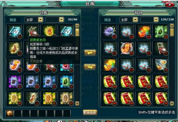 4399《盘龙神墓记》大型仓库最高空间为200,默认为40,玩家们如果有需要可以使用相关材料自行拓展至200空间。背包和仓库之间的物品存取采取拖动转移法,可以单件拖动,也可以使用“Shift+左键”批量转移物品。