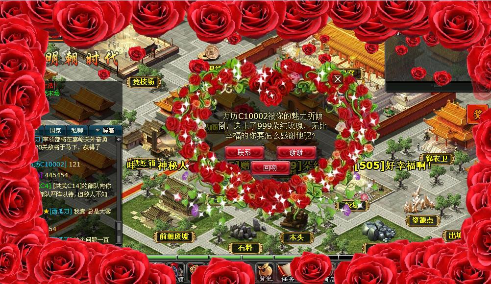 4399《明朝时代》第57区“永乐大典”才于2月24日震撼开启,全区就爆发了一场又一场全城赠送鲜花的风暴,原来,随着张学友、刘若英、吴彦祖、谢霆锋主演的<全城热恋>上映在4399《明朝时代》游戏内这才兴起了一股互赠情人节礼物的高潮。