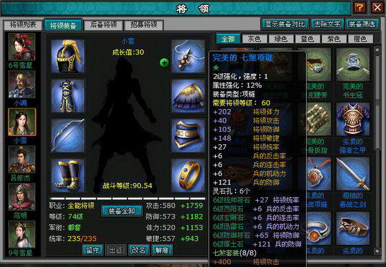 其次是重整装备,重新镶嵌宝石,将勇者套装最合理的运用。在饰品上镶嵌一个6级的统帅宝石,在所有的装备上加兵的防御,将的防御石头,加兵的生命,将的体力石头,一件都不能少试图将综合防御提到3000,综合体力提到3000.