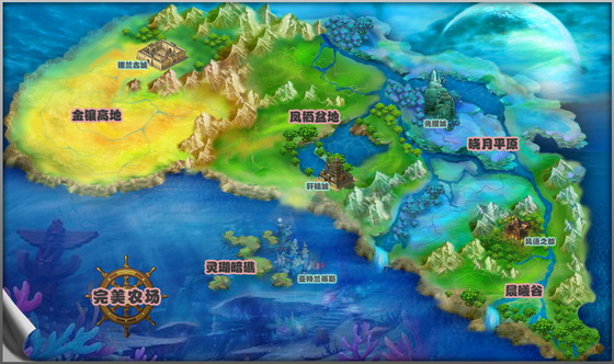 油画般的仿真大陆,蓝色重洋之间的绿色之乡。4399《完美农场》(原梦幻农场)世界地图给人一种俯瞰大地,胸怀宇宙的美感,高地,盆地,平原,山谷暗礁各种地形地貌适应不同的农业生产。