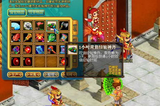 4399《飞天西游》各种道具,无论多小,都有自己的一个小系统,如飞行旗道具小系统,包括它的使用,补充技巧等等都充满智慧。同样双倍经验小系统的双倍经验神丹和双倍经验符彰显4399《飞天西游》小道具,大智慧的游戏风格。