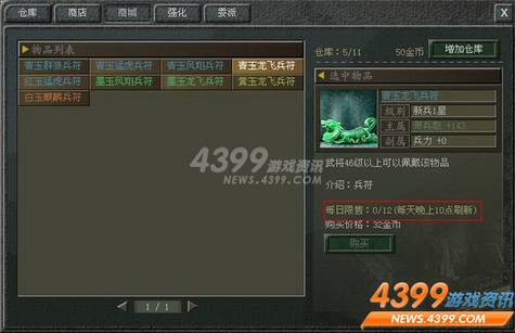 或许还有人认为4399傲视天地的游戏商贸机制是在装傻,在钓鱼。事实上,不难看出这款游戏技术部门痛心疾首的哀嚎,游戏商城中绝无仅有的几件收费道具,清玉兵符,墨玉兵符以及黄玉兵符每天只限量出售十来件。这个商场每晚10点更新,只有更新之后才有可能使用金币来购买兵符。