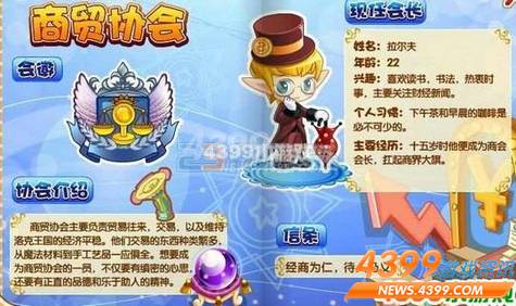 商贸协会主要负责贸易往来,交易,以及维持洛克王国的经济平稳。他们交易的东西种类繁多,从魔法材料到手工艺品一应俱全。想要成为商贸协会的一员,不仅要有缜密的心思,还要有正直的品德和乐于助人的精神。