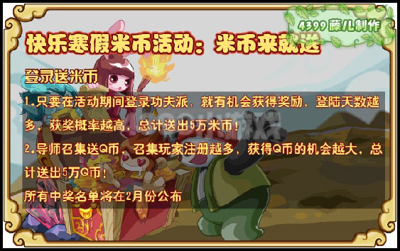 6、快乐寒假米币活动:米币来就送