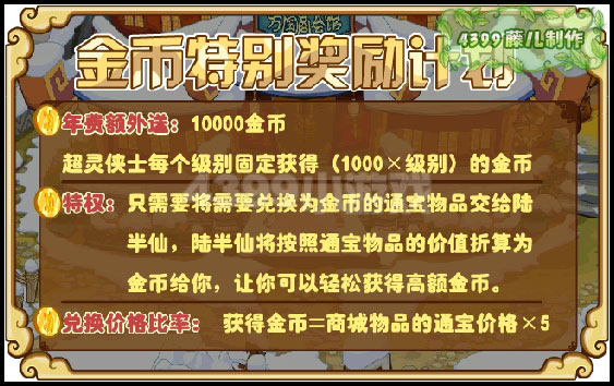 4、金币特别奖励计划