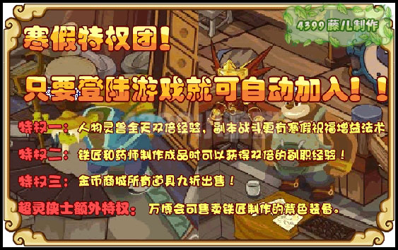 5、寒假特权团,只要登陆游戏就可自动加入!