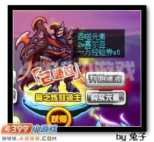 通过挑战魔界之门,收集100个魔渊之眼可在魔界补给站兑换1个吞噬元素。