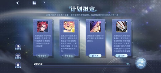 和不同的伙伴进行议事,进度达到100即可过关
