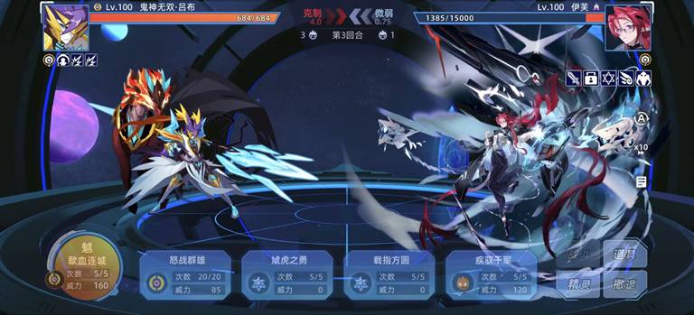 Boss特性:血量1W,必先,免疫瞬杀,封属,每回合 300 固伤,boss全能力值提升20%(相当于减伤16.7%),受到攻击消除我方能力提升状态。