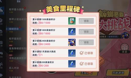 活动期间参与蟑螂恶霸的美食大挑战活动,完成美食里程碑目标:累积获得2400美食积分,即可领取获得。