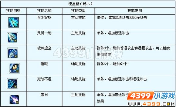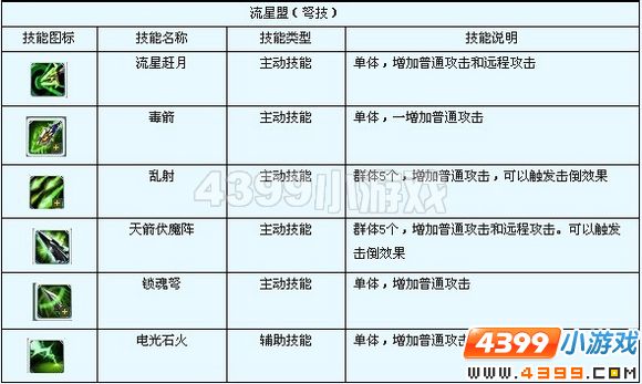 神魔遮天流星盟强吗!神魔遮天流星盟技能!神魔遮天流星盟学习力加点!流星盟半月如弦星若羽,凭栏瑟瑟意唏嘘,黄沙路远今崎岖,青史浪漫昔谁书。以器为圣,可使用长弓、短弩为武器。 主动技能: 被动技能: