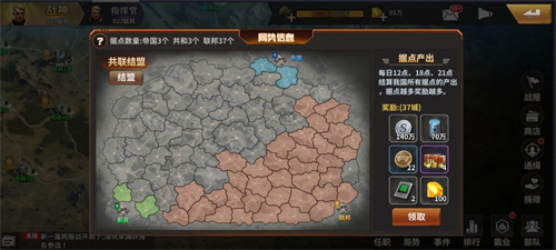 首先介绍一下,坦克雄师是一款军事策略类游戏,你可以加入共和,帝国,联邦任意一个阵营,在阵营内,你可以和自己阵营的人进行PK,最强第一名可以成为领袖。在国战中,你可以派发部队,去攻城略地,据点越多,我方全员得到的资源也越多。