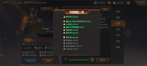 2.每个英雄有多种培养方式:训练、战车、军衔、升星、改装等等