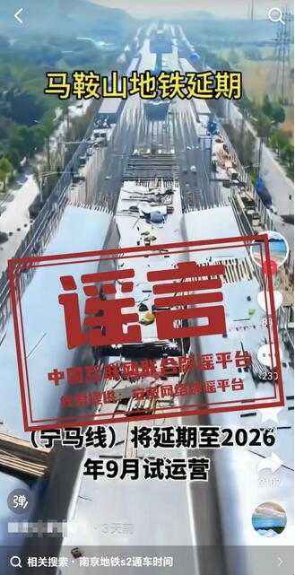 真相:近日,有网民在某短视频平台发布视频称,原计划在2025年全线通车的南京地铁S2号线(宁马线)将延期至2026年9月试运营。经马鞍山市住建局核实,该视频为不实信息。宁马城际铁路是以都市圈同城化通勤为目标,实现宁(南京)马(马鞍山)两市主城区贯通直达的重大基础设施项目,也是列入长三角地区通勤交通网的重点工程。项目按原计划进度推进。(来源:“安徽省互联网违法和不良信息举报”微信公众号、“清朗马鞍山”互联网联合辟谣平台) 谣 言 广西南宁发生3.1级地震?