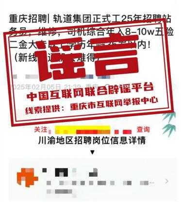 谣 言 重庆轨道新线开通,开出8-10万年薪招聘员工?
