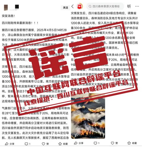 真相:4月6日,有网民发布文章称“2025年4月5日14时28分,凉山彝族自治州冕宁县腊窝乡突发森林火灾,火势迅速蔓延,过火面积初步估算约2.3平方公里……”经核实,2025年4月5日,凉山彝族自治州冕宁县腊窝乡并未发生森林火灾,四川省并未启动应急响应,也没有出动应急救援队伍,此消息为谣言。(来源:@四川应急)辟 谣 中粮资本紧急声明