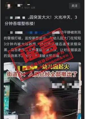 通 报 一幼儿园发生大火,32名孩子被困?实为使用“AI工具”编造的谣言