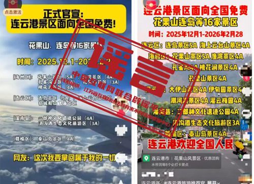 谣 言 江苏连云港景区“2025年12月1日至2026年2月28日面向全国免费”?