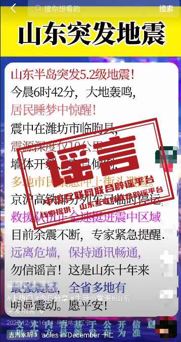 详情:近日,网上流传涉山东聊城、潍坊的地震传言,引发关注。
