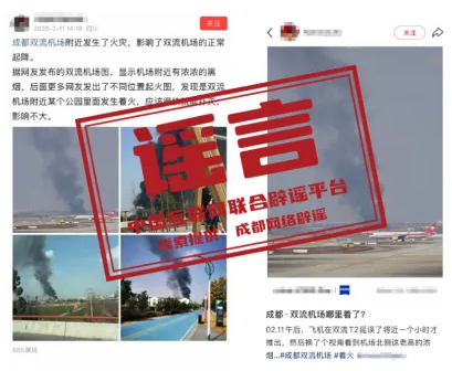 经核实,网传图片画面系2月11日成都武侯区金花桥街道一废弃仓库杂物起火现场,当日14时30分明火已完全扑灭,无人员伤亡。据成都双流国际机场核实,机场北围界外约2公里处发生火情,未对机场运行造成影响,航班起降正常。(来源:“成都网络辟谣”微信公众号)