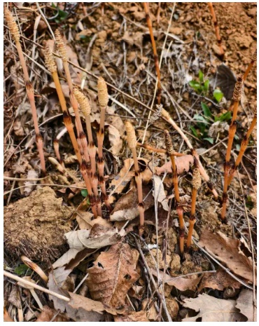 有问荆草并不一定有金矿,尤其当山体远离已知矿区时,这一种植物并不是唯一的判断依据。通常情况下,问荆草在重金属富集的地方长得格外茂盛。它一旦占据上风,其他杂草便生长得稀少。因此,若要借助问荆草推断地下是否藏有矿藏,关键要看它是否为优势草种。
