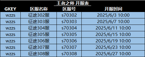 各位主公好,王者之师6月新区开服计划如上所示,所有新区将按照计划日期进行开放。各位主公可以准备前往新区开拓自己的辽阔疆域,争夺新区第一的首座!