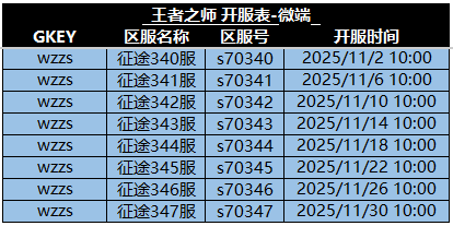 各位主公好,王者之师11月新区开服计划如上所示,所有新区将按照计划日期进行开放。各位主公可以准备前往新区开拓自己的辽阔疆域,争夺新区第一的首座!
