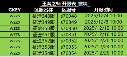 各位主公好,王者之师12月新区开服计划如上所示,所有新区将按照计划日期进行开放。各位主公可以准备前往新区开拓自己的辽阔疆域,争夺新区第一的首座!
