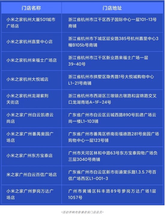 5月29日至6月7日,《我的汤姆猫2》携手小米游戏开启线下互动有奖活动啦。玩家可以前往10家指定小米之家门店,参与“我的汤姆猫2”亲子活动。活动中,玩家只要在店内找到3个汤姆猫形象,并合影分享朋友圈,即可赢取各种有趣的汤姆猫周边好礼。详情门店可见下图: