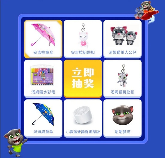 5月29日一直到6月7日,游戏中心下载抽奖活动也会上线。在小米游戏中心搜索《我的汤姆猫2》并下载游戏,玩家即可参与线上抽奖,并有机会赢取多种可爱汤姆猫限量周边与各式智能硬件产品。