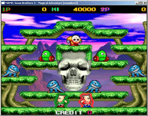雪人兄弟到了第三代了。更多的游戏设定,更多的人物出场。属于雪人兄弟最经典的一代。这款游戏从1990年至今已经有20个年头,目前还有IOS、安卓版本。真的让小四很佩服~~