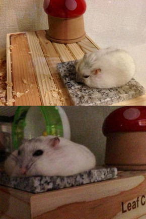 为给家中仓鼠降暑,给它垫了块大理石。看上去好舒适的样子,目测小家伙就要融化了~