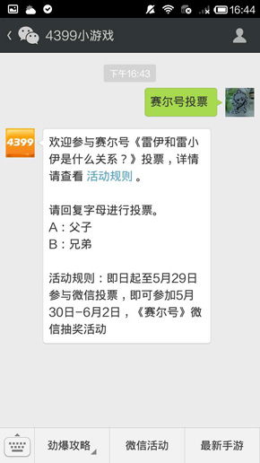 第二步:在4399小游戏微信中文字回复“赛尔号投票”
