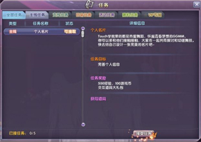 玩家创建完角色后,会进入到【4399Touch】首页界面。此时“任务”图标处,会有提示,指引用户进行点击领取你步入舞坛的第一个职业任务。