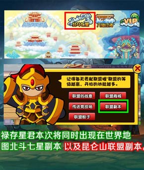 禄存星君本次将同时出现在世界地图北斗七星副本,以及昆仑山联盟副本中。
