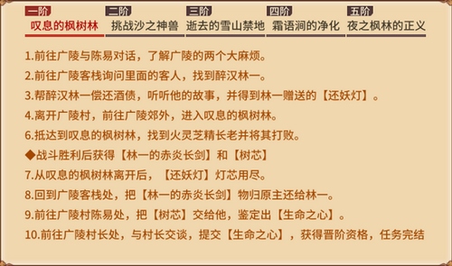 而关于进阶任务,灵儿在此给少侠罗列出了各种进阶任务需求:
